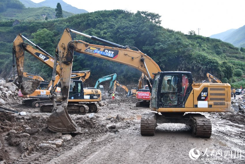 目前,挖掘機、裝載機和運輸車輛在新華村不停穿梭,數十臺機械同時作業,各項搶險救援工作仍在繼續進行。
