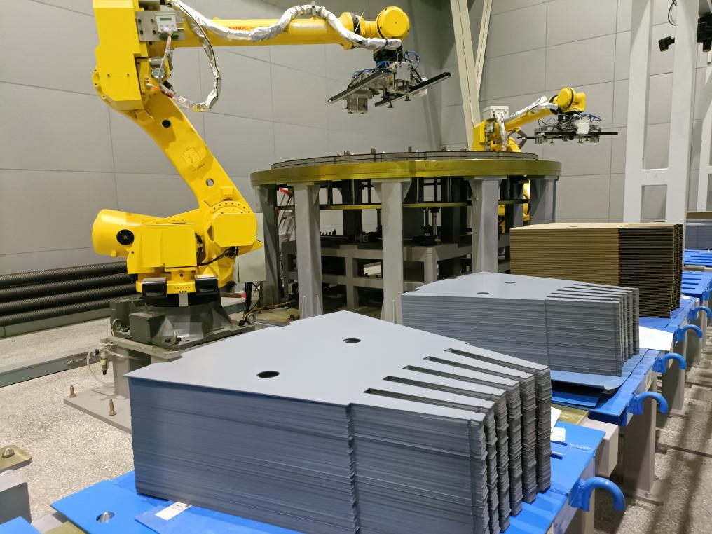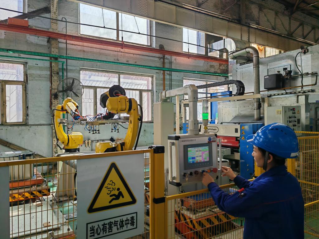 2024年上半年,東輕“數(shù)智化圓錠加工園區(qū)”正式落成。在這條由蘇聯(lián)援建的鋁合金中小直徑圓錠生產(chǎn)線上,機器人無需人工干預,通過全自動的定位和抓取,短時間內(nèi)就能完成上料填裝等全套流程。“改造前,這條生產(chǎn)線各道工序均需人工參與,效率較低且伴有高強度重復性勞動。”東輕熔鑄廠設備保障組二級技師王驍睿介紹,“機器人操作在保障生產(chǎn)進度、提高作業(yè)質(zhì)量的同時,有效緩解了崗位人手配置壓力。人機分離后,安全保障也得到了明顯提升。”