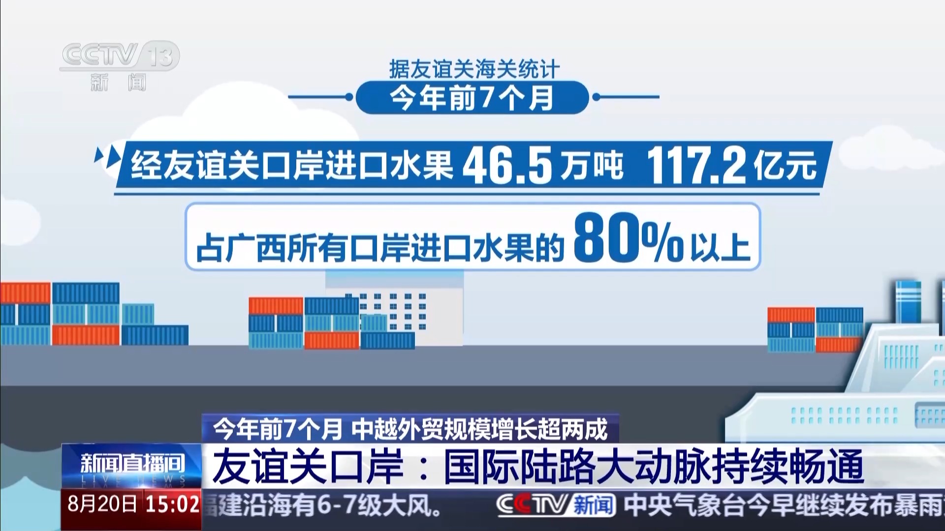 據友誼關海關統計,今年前7個月,經友誼關口岸進口水果46.5萬噸、117.2億元,占廣西所有口岸進口水果的80%以上。