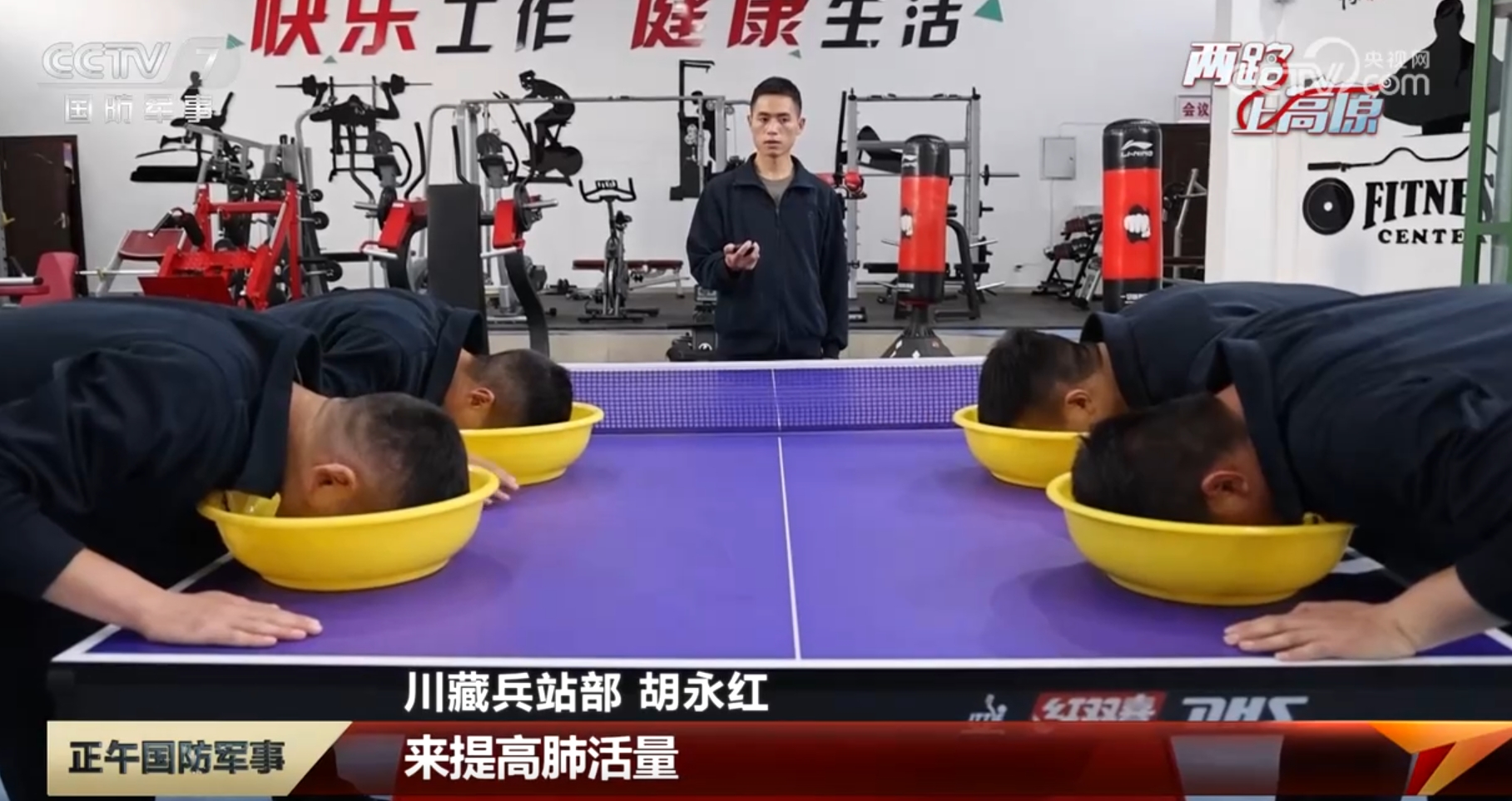 川藏兵站部胡永紅介紹:“首先大部分人初上高原,身體機能各方面,比如心臟這些都不適應(yīng)高原的氣候,提前做抗缺氧操有利于適應(yīng)高原的環(huán)境。一兩周之后,你可以慢慢適應(yīng)去訓(xùn)練,主要是心肺功能的訓(xùn)練,平時我們也會進行水中憋氣來提高肺活量。日常我們也會注意改善自己的生活習(xí)慣,比如用腹式呼吸可以改善缺氧狀態(tài)。”