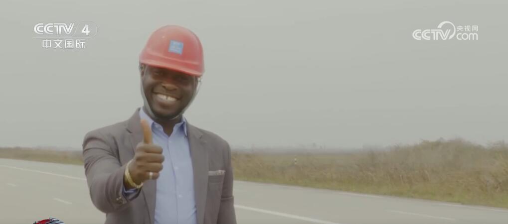 連接剛果(布)政治首都布拉柴維爾和經濟首都黑角的國家一號公路的建成讓該國三分之二居民生活因此得到了改變,而旁邊是與中方一起承建這條公路的剛方工程師美德。