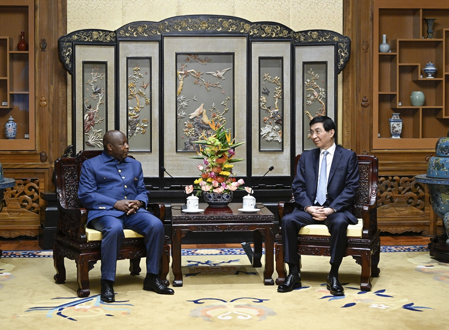 9月6日,全國政協主席王滬寧在北京會見來華出席中非合作論壇北京峰會的布隆迪總統恩達伊施米耶。新華社記者 申宏 攝