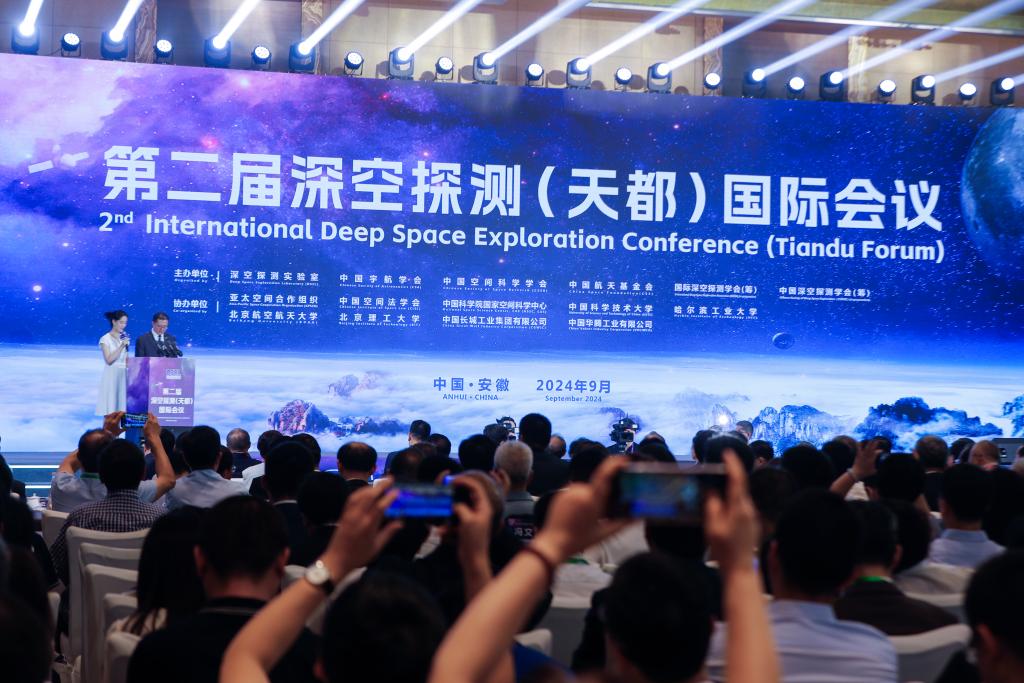 9月5日,這是第二屆深空探測(cè)(天都)國際會(huì)議開幕式現(xiàn)場(chǎng)。新華社發(fā)(施亞磊 攝)
