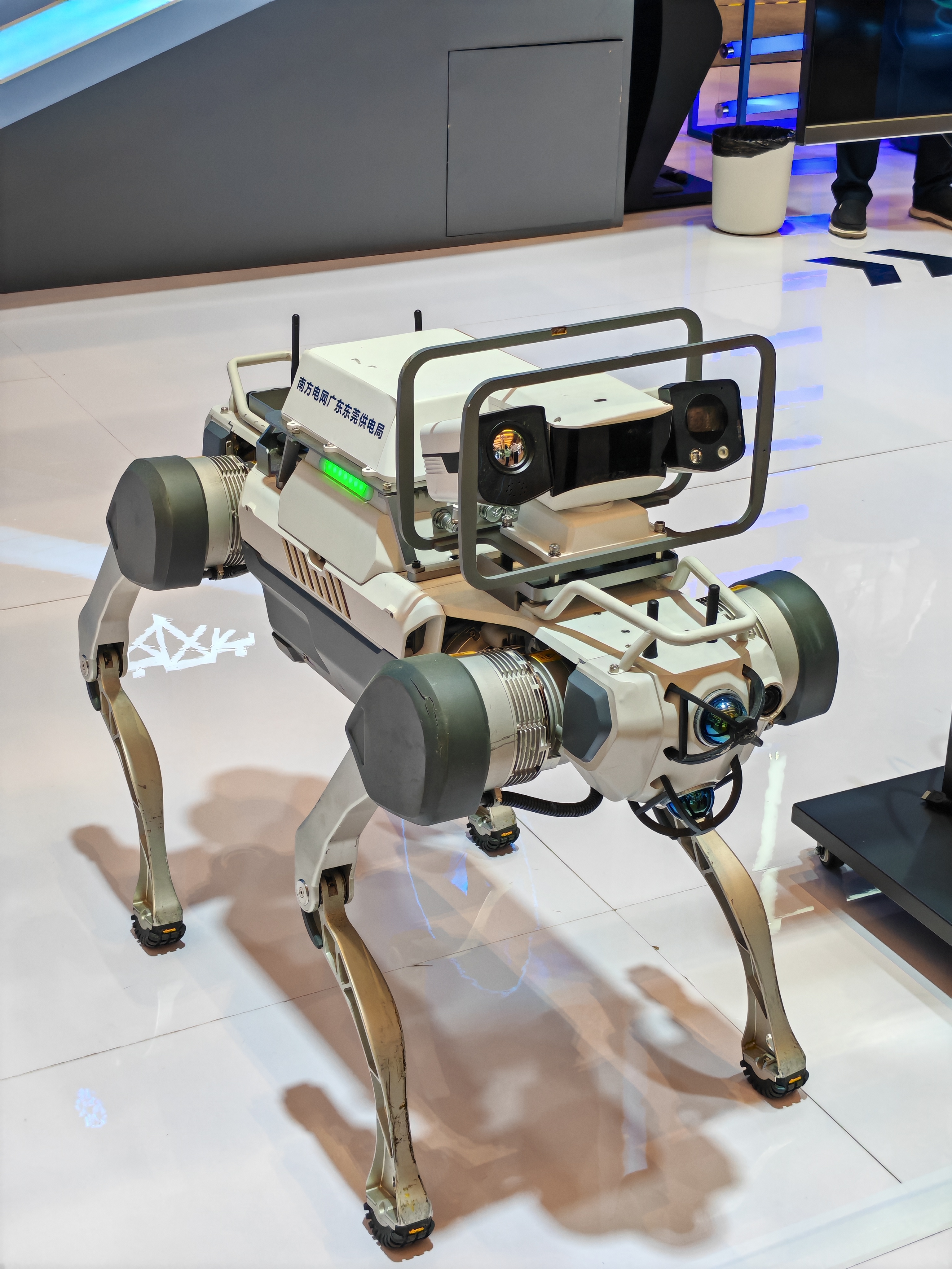 中國經濟網記者在博覽會現場看到,多家企業展示了網絡安全方面的應用技術成果。中國南方電網集團研發出機器狗“吠云”,搭載雙光云臺、低功耗相機,融合智能識別、多機協同、數字孿生、巡檢監控等十大創新技術,已在220kV掌洲站投入使用,實現了智能設備巡視覆蓋率達100%,減少人工巡維工作量超80%。