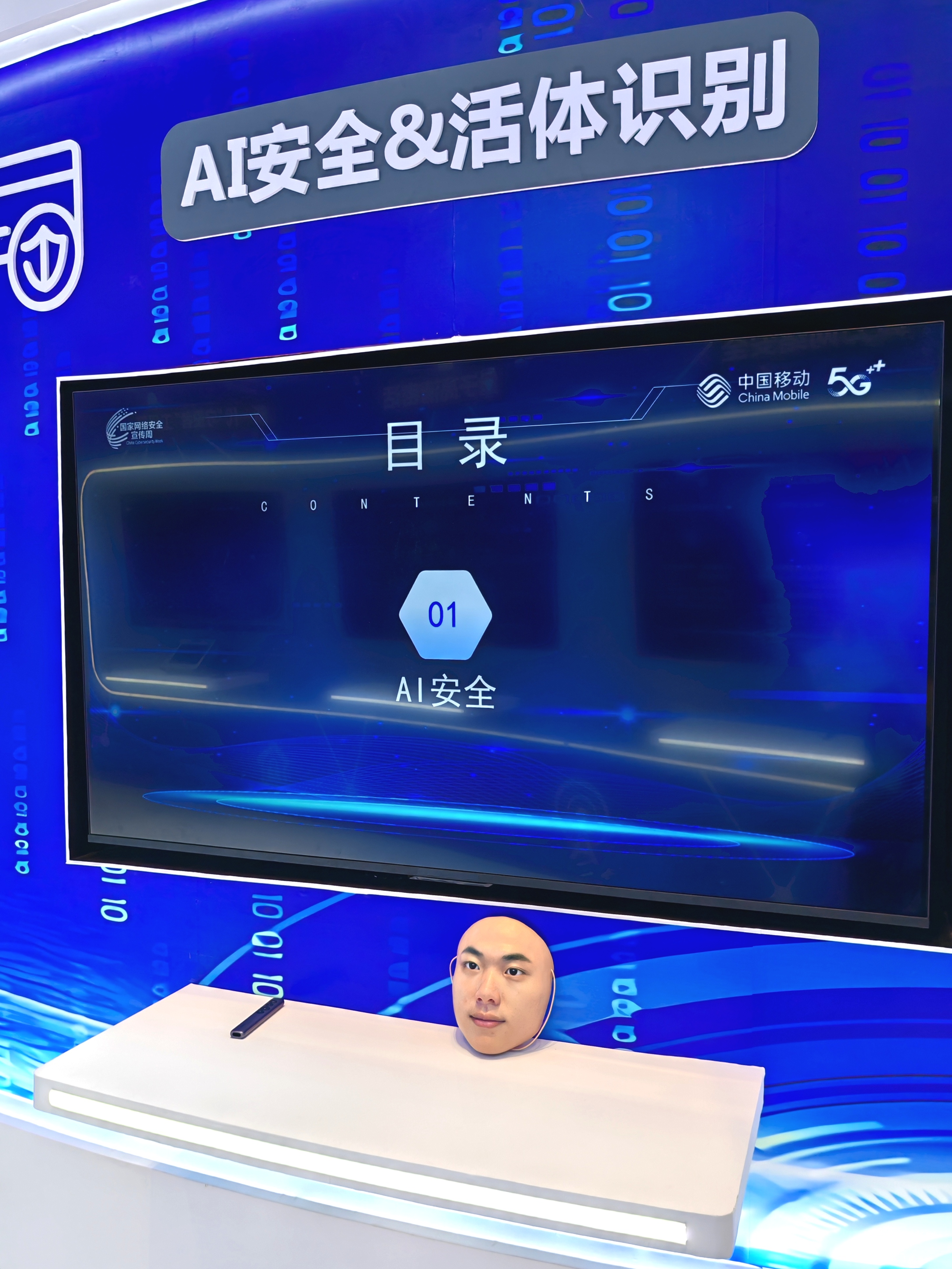 圖為中國移動集團展示的AI安全&活體識別技術。中國經濟網記者 梁秋亞攝
