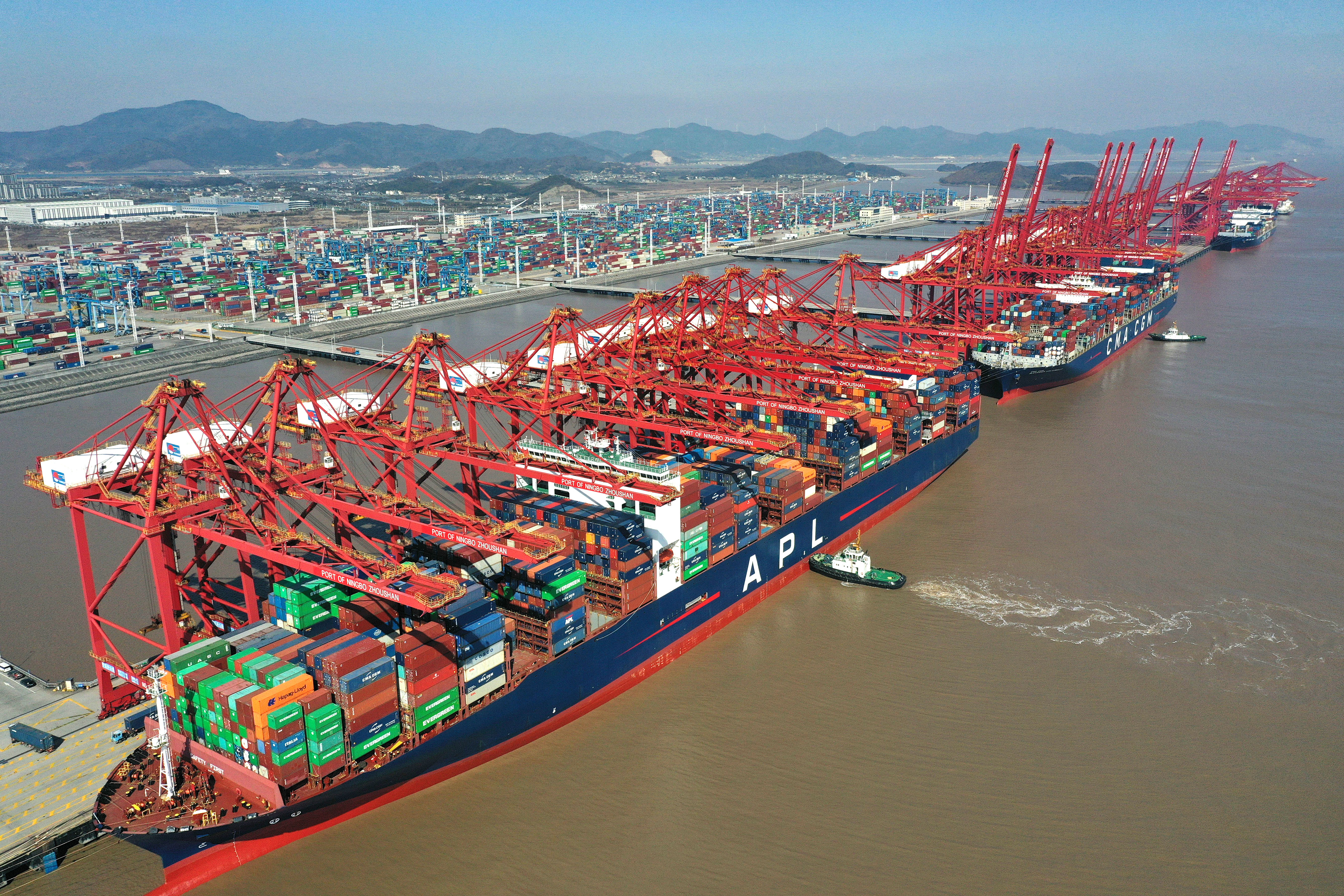 貨輪停靠在浙江寧波舟山港梅山港區(qū)碼頭(2024年1月24日攝,無人機照片)。新華社記者 黃宗治 攝
