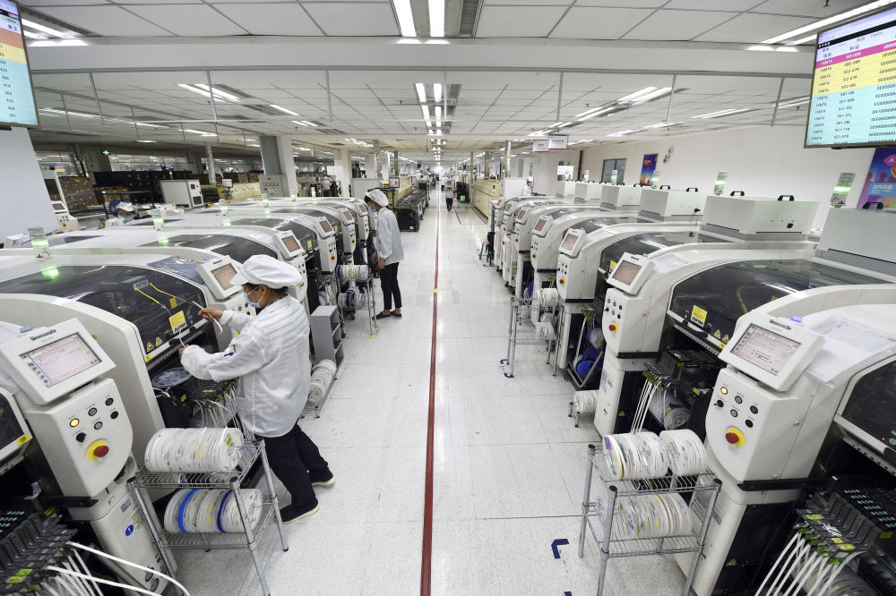 工人在位于安徽合肥的聯寶(合肥)電子科技有限公司生產車間內忙碌(2020年3月5日攝)。新華社記者 周牧 攝