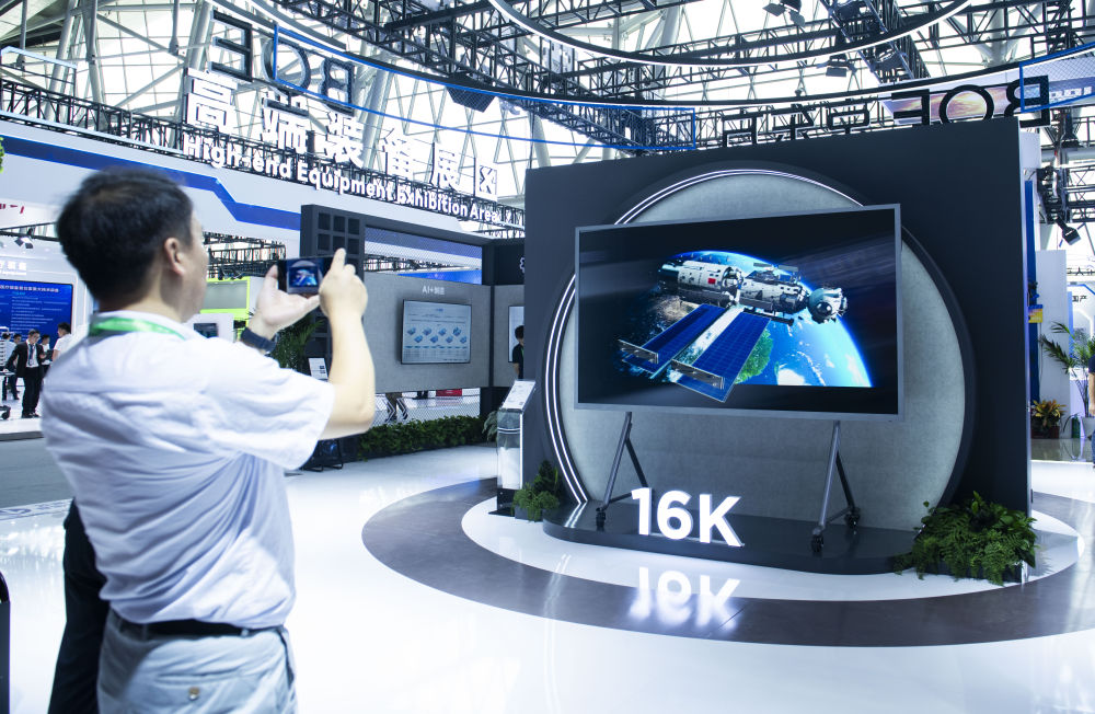 9月20日,觀眾在2024世界制造業大會展館內了解16K裸眼3D屏幕。新華社記者 傅天 攝