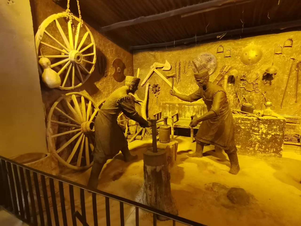 在古城“不經意的轉角”,迎著昏黃的燈光,記者走入了一家鐵匠鋪。憑借精致的鐵器工藝品、各式各樣的打鐵工具、“爐火純青”的現場展示,“坎土曼巴扎鐵業社”引來眾多游客駐足。據介紹,麥麥提艾力 吾布力卡斯木家族從清末到現在,一直從事傳統鐵器手工打制營生。這間老城街巷里的鐵匠鋪歷經五代傳承,伴隨著從2010年開始的喀什老城區危舊房改造,經過兩次改造、提升、活化,打鐵鋪舊貌換新顏,但土灶、爐火與捶打聲如故。