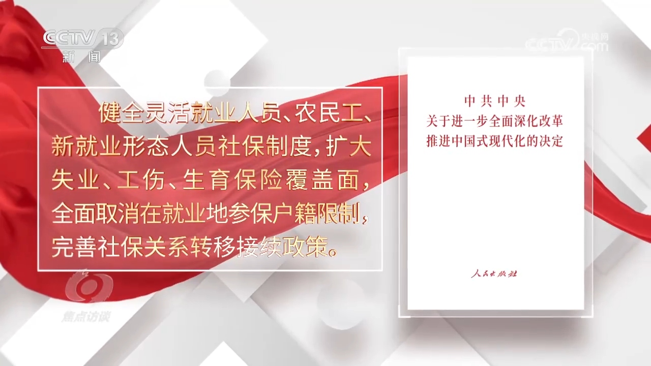 今天節(jié)目繼續(xù)聚焦“開辟中國式現(xiàn)代化廣闊前景”。我們的目標(biāo)很宏偉,也很樸素,歸根結(jié)底就是讓人民過上更好的日子。習(xí)近平總書記說,孩子的撫養(yǎng)教育,年輕人的就業(yè)成才,老年人的就醫(yī)養(yǎng)老,是家事也是國事。的確,中國式現(xiàn)代化民生為大。黨和國家是把這些事放在心上的。黨的十八大以來,我國建成世界上規(guī)模最大的醫(yī)療衛(wèi)生體系,全國各級(jí)教育普及程度達(dá)到或超過中高收入國家平均水平,建成世界上規(guī)模最大的社會(huì)保障網(wǎng)。面對(duì)新形勢(shì)新挑戰(zhàn),社會(huì)保障也在不斷調(diào)整,發(fā)揮兜底作用。黨的二十屆三中全會(huì)圍繞“健全保障和改善民生制度體系”作出一系列重要改革部署,提出健全靈活就業(yè)人員、農(nóng)民工、新就業(yè)形態(tài)人員社保制度。這就要求面對(duì)新情況新問題,不斷探索完善符合人民群眾需要的社保體系。現(xiàn)在,這項(xiàng)工作在全國多個(gè)試點(diǎn)已經(jīng)取得了成效。