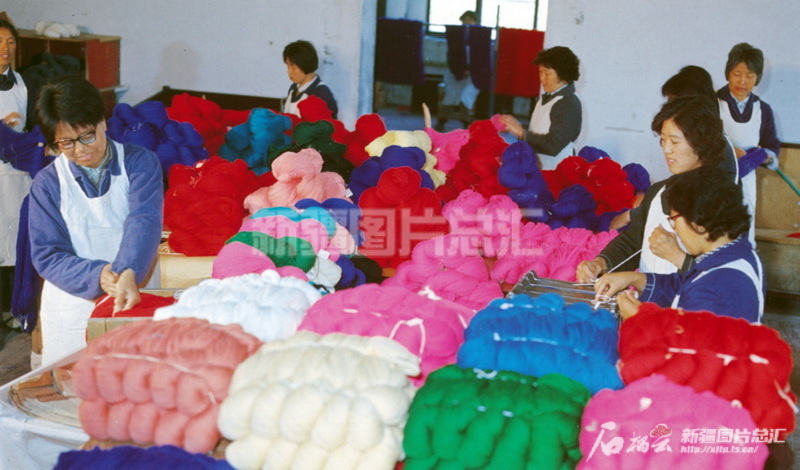 八一毛紡織廠生產的蜜蜂牌毛線,成為市場俏銷商品(1982年攝)。新疆圖片總匯資料圖片