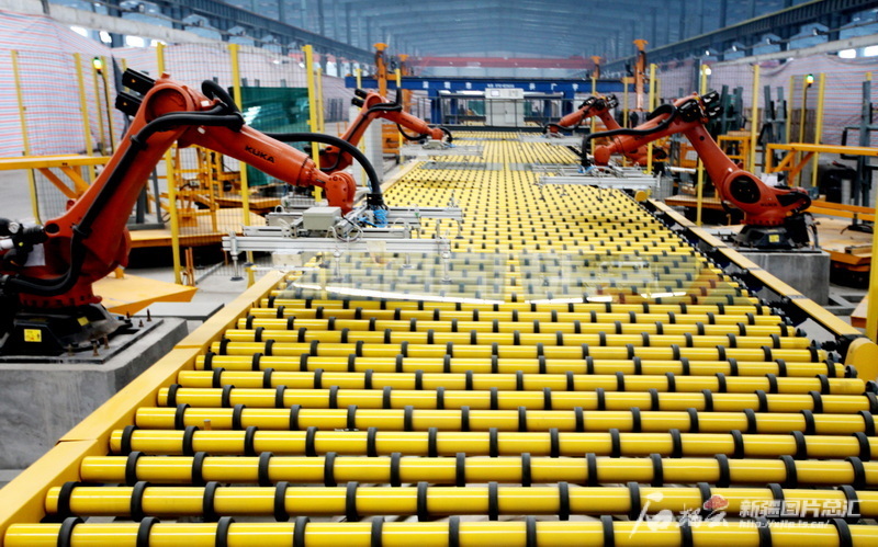 2016年8月,位于新疆生產建設兵團第五師的新疆普耀新型建材有限公司生產車間內景。新疆圖片總匯資料圖片