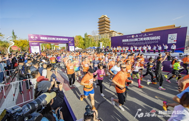 2023年10月15日,博斯騰·2023鐵門關半程馬拉松在新疆生產建設兵團第二師絲路雄關景區鳴槍開賽。李嘉成攝