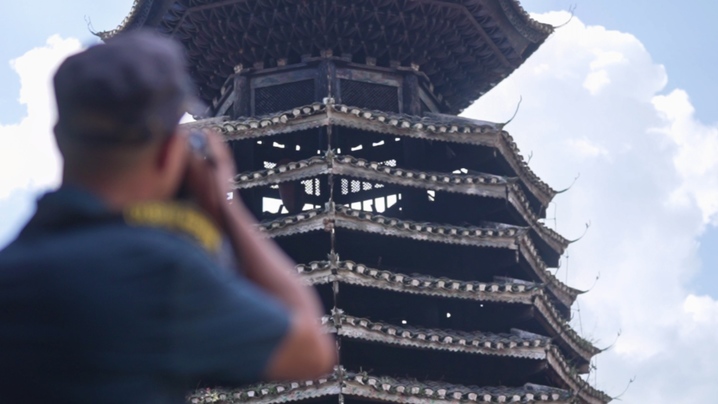從江縣文物事業(yè)發(fā)展中心主任楊昌煥頻繁到訪增沖村,只因為這里到處都是鄉(xiāng)土智慧的結(jié)晶。“無法復(fù)制、獨(dú)一無二……”提及增沖鼓樓,楊昌煥有著說不完的夸贊。“盡管歷經(jīng)多次維修,但其主體結(jié)構(gòu)依然保存完好。鼓樓平面為正八邊形,立面為穿斗式十三層密檐雙層樓冠八角攢尖頂,獨(dú)特的‘內(nèi)四外八’柱網(wǎng)布局,在節(jié)省材料的同時最大化利用了底層空間。樓身與樓冠之間獨(dú)特的構(gòu)造關(guān)系,雖然看似結(jié)構(gòu)穩(wěn)定性差,但它卻聳立300多年依舊安然無恙,這無疑展示了建造者的高超技藝。”