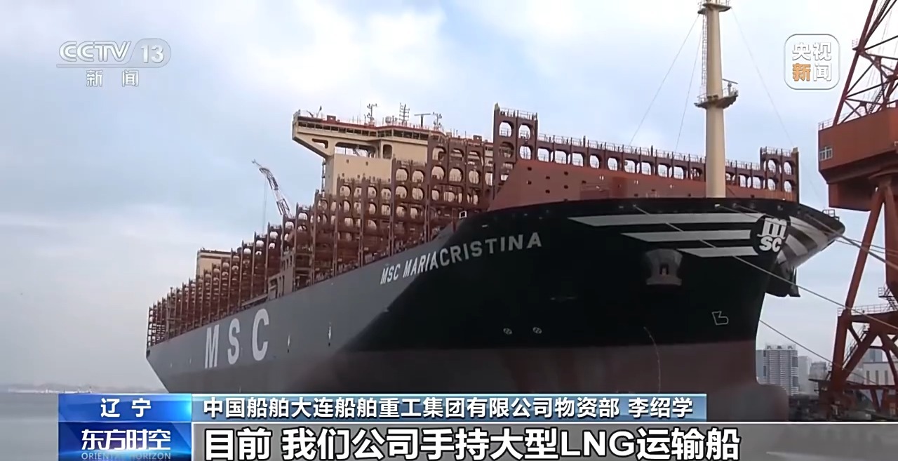 這兩天,大連這家船舶公司一艘在建大型液化天然氣(LNG)運輸船停靠在碼頭泊位,近千名工人正在進行船舶舾裝作業。在碼頭的另一側,一艘LNG雙燃料集裝箱船正在做交付前最后的調試。這艘海上“巨無霸”采用天然氣和燃油雙燃料驅動,能夠減少碳排放20%以上,減少100%的硫氧化物排放。