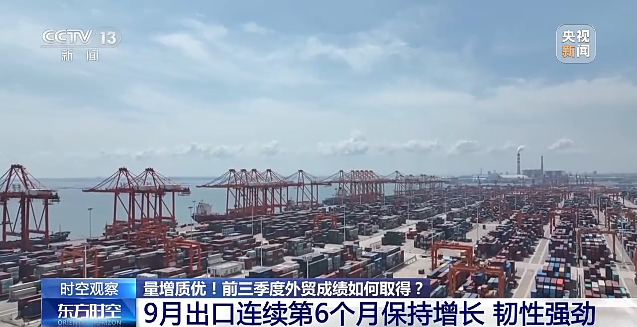 從前三季度的整體來看,9月份出口連續第6個月保持了增長,前三季度累計出口規模達到了18.62萬億元,創歷史同期新高,同比增長了6.2%,這個增速比最近10年同期的平均增速高了0.5個百分點。