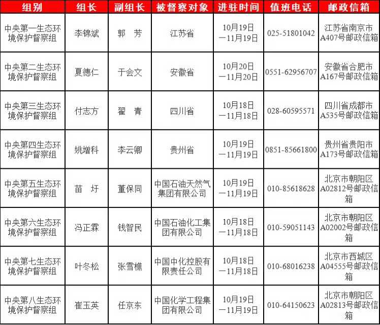 據悉,根據工作安排,督察進駐時間為1個月。進駐期間,各督察組分別設立專門值班電話和郵政信箱,受理被督察對象生態環境保護方面的來信來電信訪舉報,受理舉報電話時間為每天8:00至20:00。督察組全體成員將嚴格執行紀律要求,接受被督察對象和社會監督。