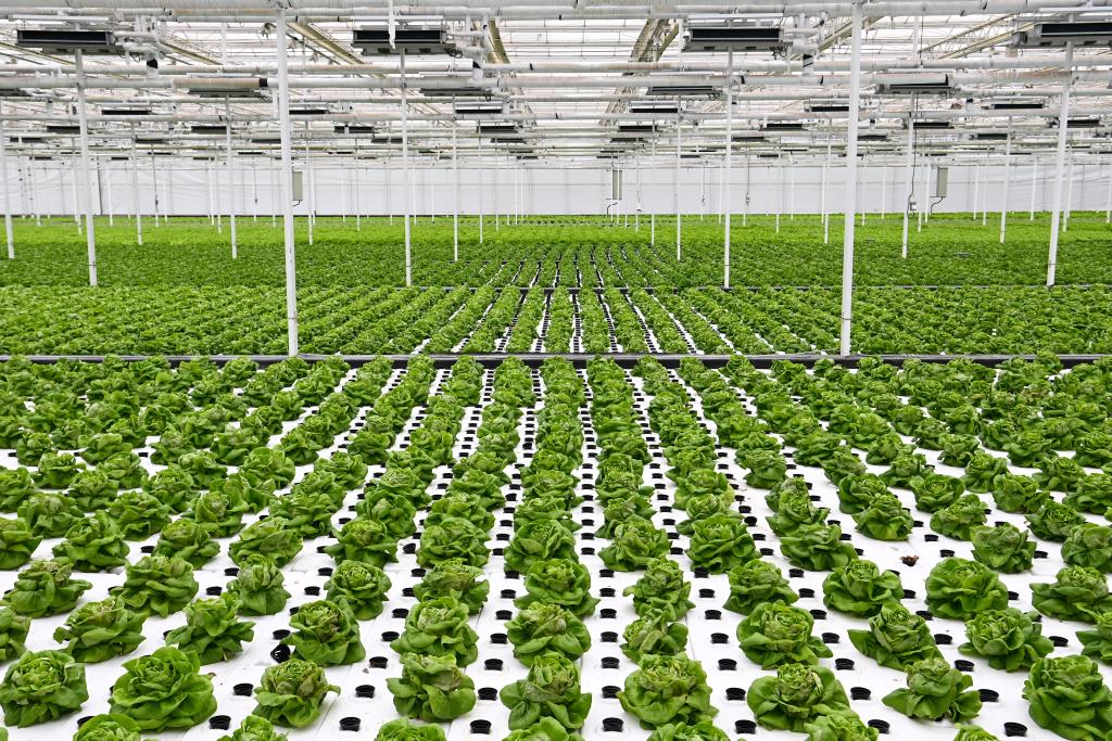10月26日,楊凌智慧農業示范園智慧溫室內通過無土栽培技術種植的蔬菜。新華社記者 鄒競一 攝