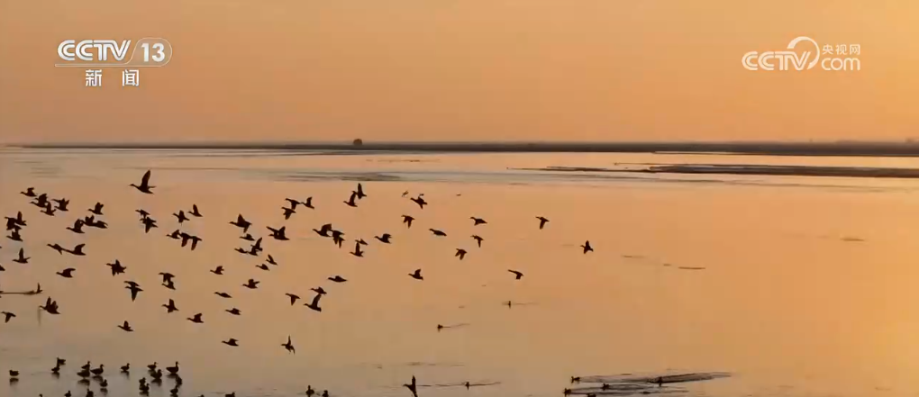 隨著天氣轉涼,近日,黃河濕地自然保護區山西永濟段,迎來上萬只遷徙候鳥,夕陽下,鳥兒們或在河面上休憩覓食,或成群結隊展翅飛翔,與絢麗的晚霞、水天一色的黃河相映成趣,再現“落日飛天”景觀。此次過境候鳥主要有黑鸛、大天鵝、黑鶴等,當地林業部門組織人員24小時不間斷巡護,同時在鳥類聚集區安裝了紅外監控視頻,保障候鳥遷徙安全。