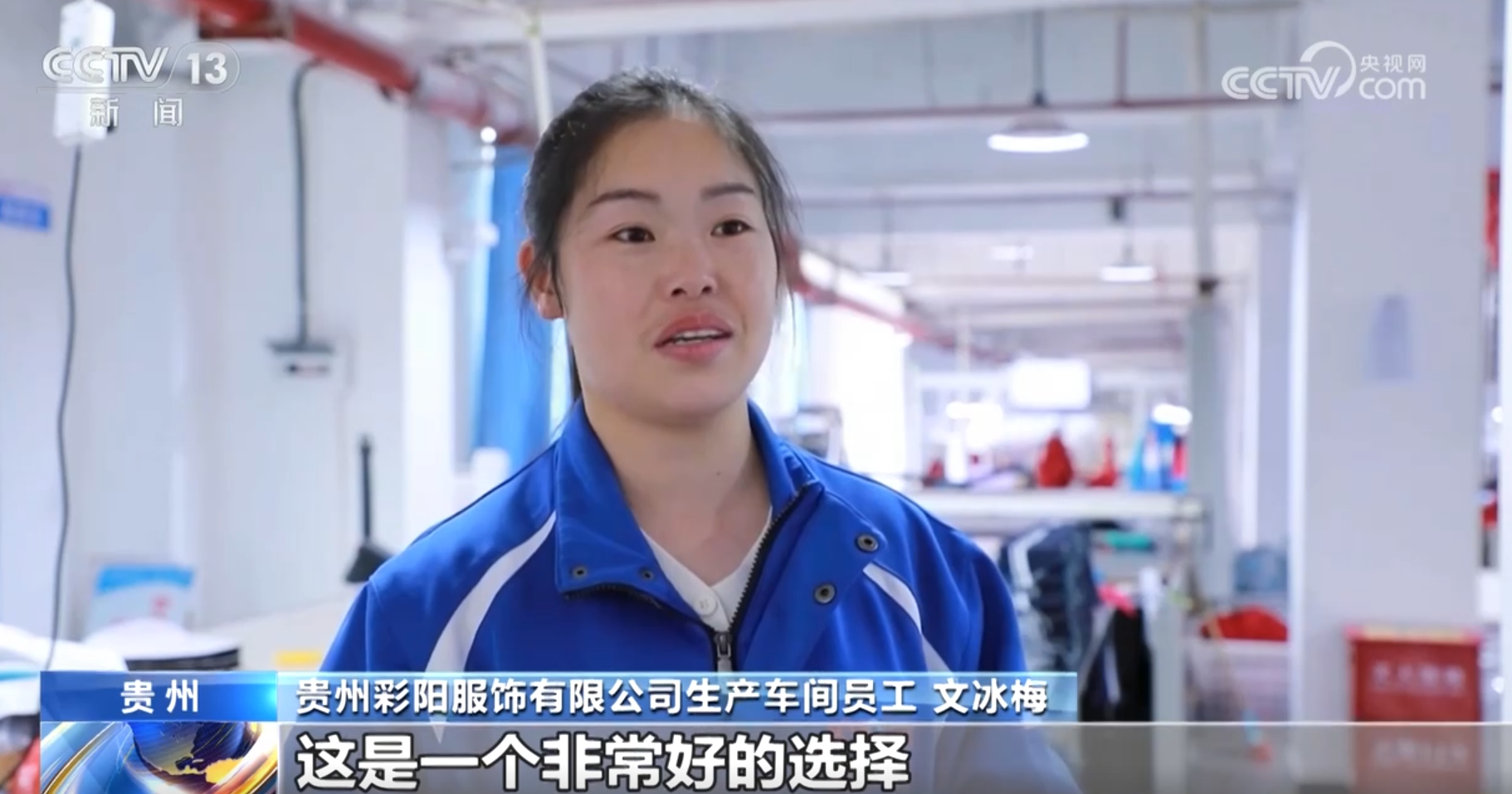 貴州彩陽服飾有限公司生產車間員工文冰梅稱:“平均工資四五千元,十幾年都在外面打工,回到家還有一份穩定的收入,對于我們長期在外面打工的人來說,這是一個非常好的選擇。”