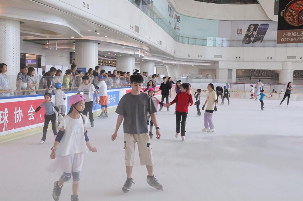 今年7月26日,人們在華潤上海萬象城冰場參加滑冰等冰上活動。(岳遠 攝)