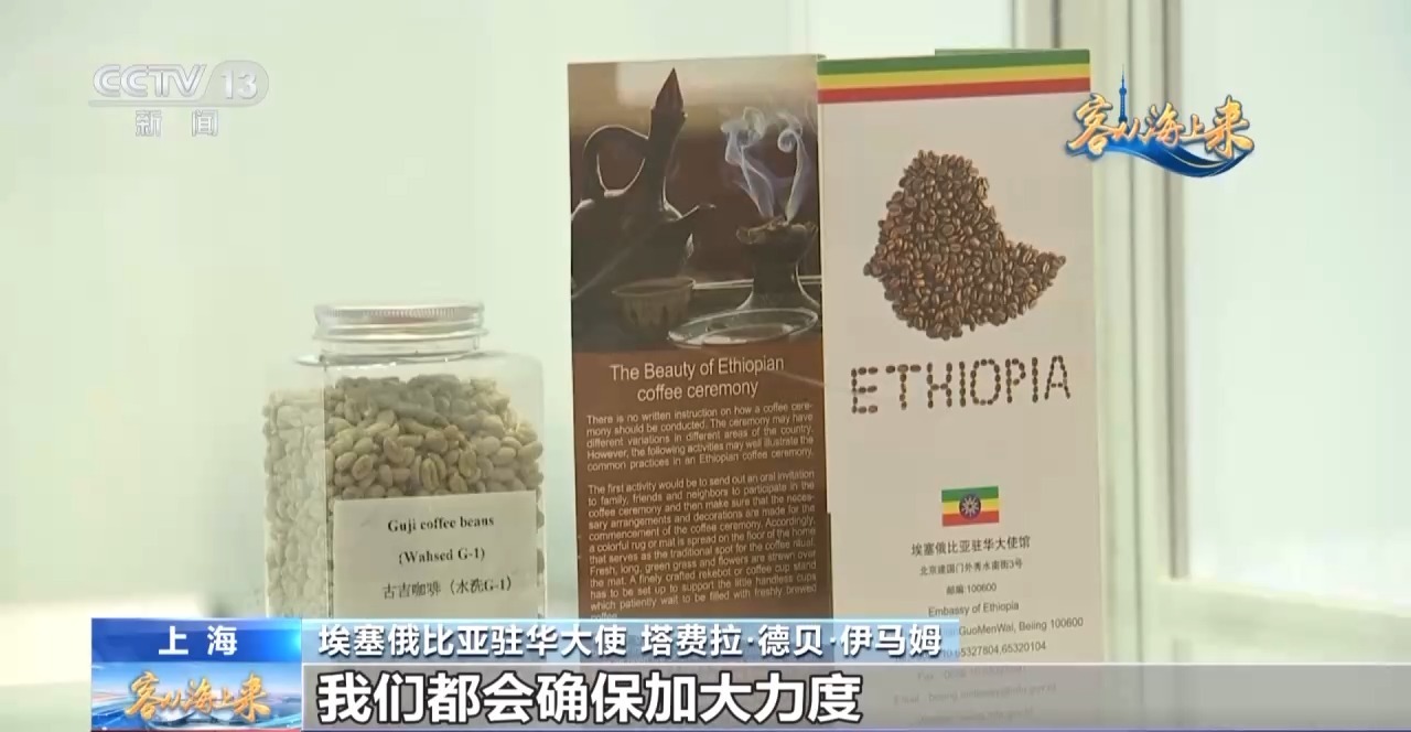 埃塞俄比亞駐華大使 塔費拉·德貝·伊馬姆:參加每一屆進博會,讓我們有機會真正地推廣和展示我們不同口味的咖啡品種。每一次參加進博會,我們都會確保加大力度推廣和展示我們的咖啡品種。我們因此接觸到了新的客戶和市場。通過進博會,我們的咖啡出口量一直在增長,而且增速很快。你也參觀了我們的國家館,看到了我們埃塞俄比亞的傳統咖啡儀式,所以我們不只是在賣咖啡,我們也在展示與咖啡相關的深厚文化,所以這也是兩國人民間的文化交流。