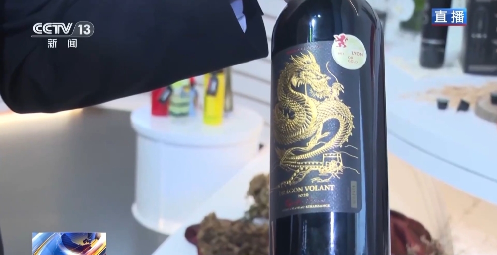 要特別介紹的是一款干紅葡萄酒。這款葡萄酒,酒瓶里面,是來自法國波爾多一家葡萄酒莊園陳釀18個月的美酒;而酒瓶外面,也是一個亮點,是由中國和法國設計師聯合設計的極具中國文化特色的金龍和長城圖案包裝,這不僅是一瓶佳釀,更是中法文化交流、友好往來的見證。