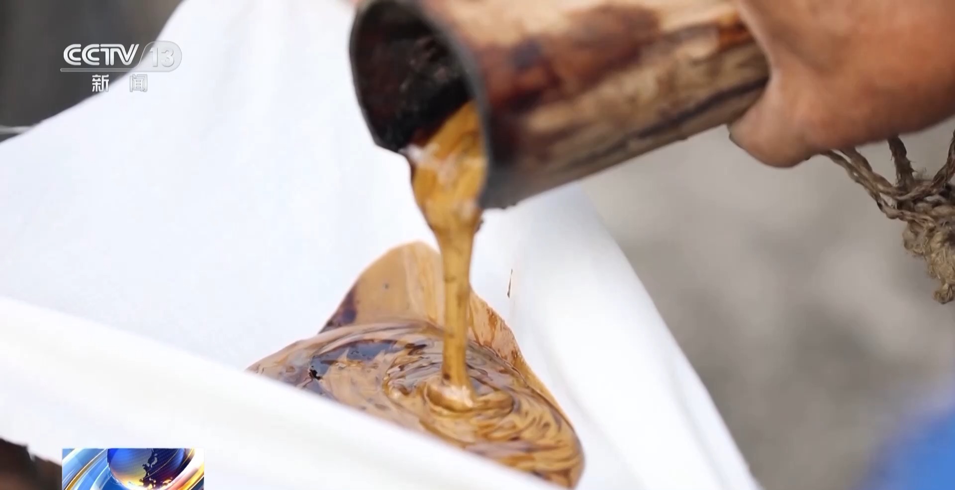 收割來的生漆,經過濾渣、熬制、冷卻與桐油混合之后才能使用。