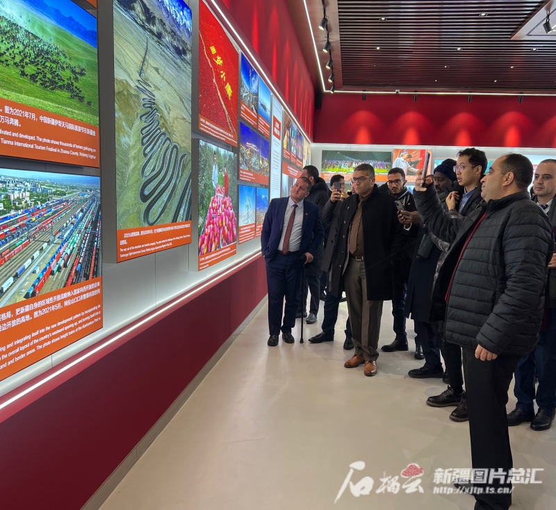 11月29日,考察團一行在“新疆的反恐和去極端化斗爭主題展”參觀。石榴云/新疆日報記者 米日古力·吾攝