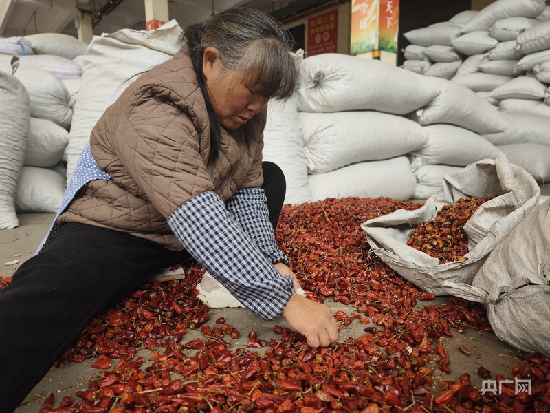 工人梁龍先正在分揀辣椒(央廣網記者 欒小琳 攝)