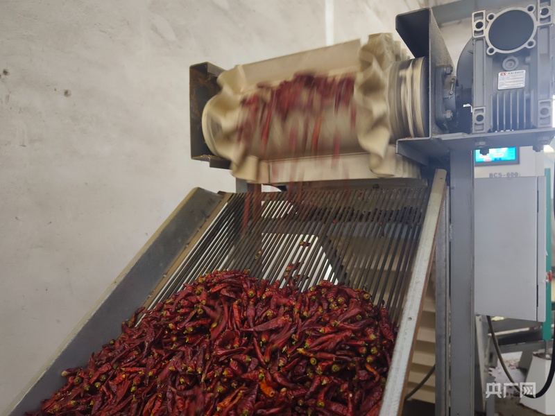生產車間內辣椒正在進行機械化處理(央廣網記者 欒小琳 攝)