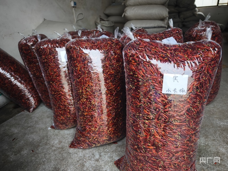 裝袋好的辣椒正等著運往各地(央廣網記者 欒小琳 攝)