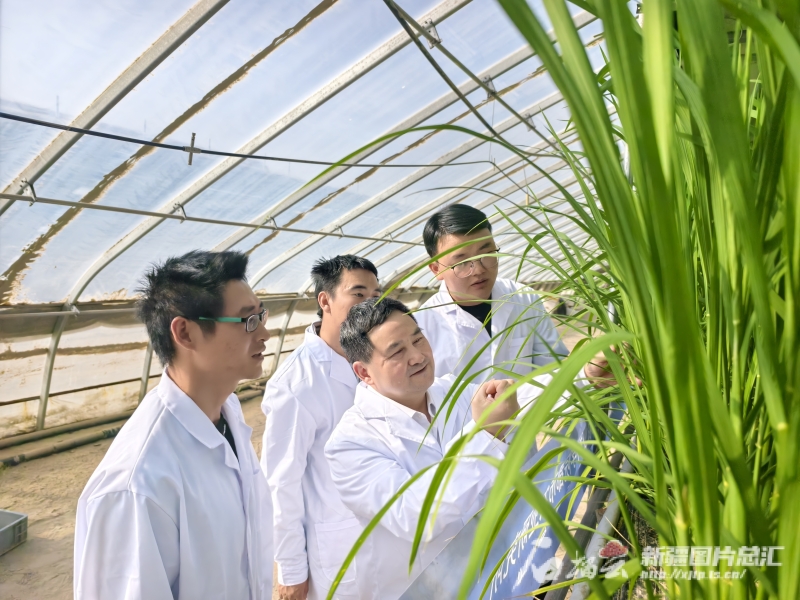 11月20日,和田地區和田縣萬畝設施農業基地沙漠溫室水稻種植大棚內,中國農業科學院都市農業研究所首席科學家楊其長團隊正在查看水稻長勢。胡禮政攝