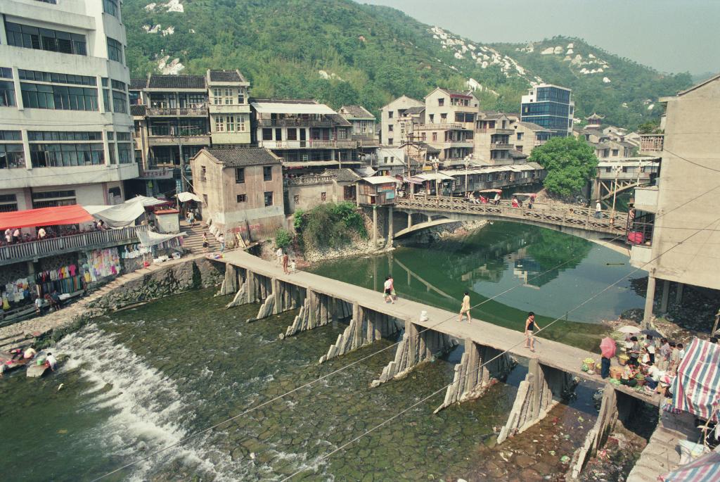 圖為改革開放初期,橋頭商販擺攤賣鈕扣的主要地段,即當地的石板橋。新華社發