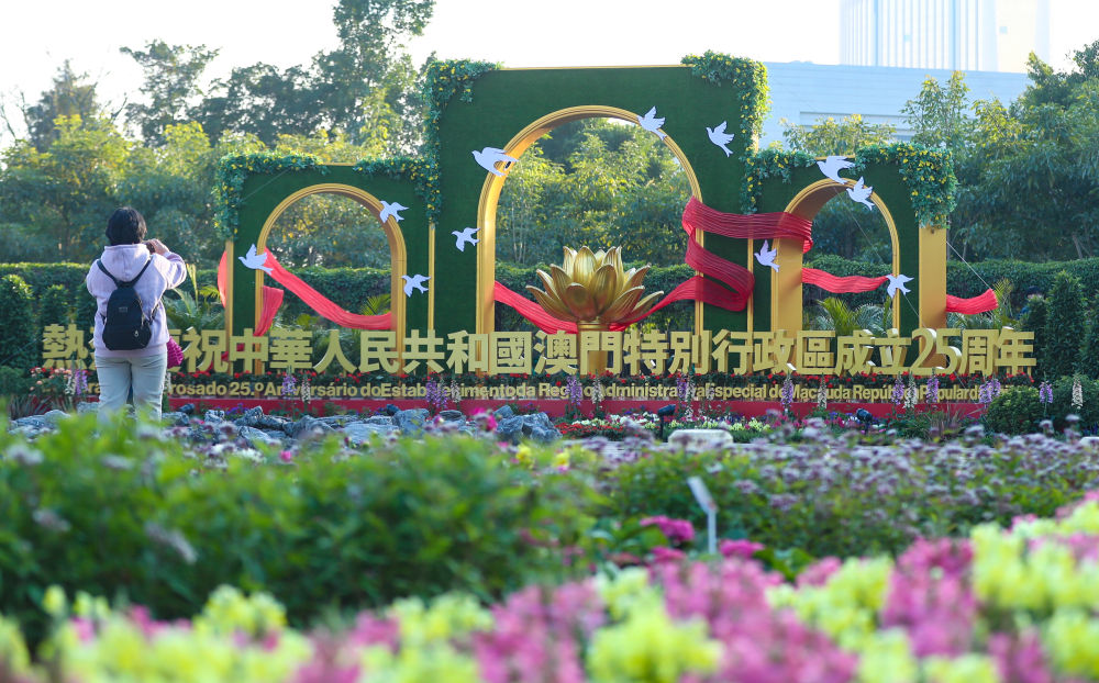 12月17日,市民在澳門(mén)一處慶祝花壇前拍照。新華社記者 姚琪琳 攝