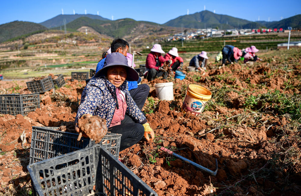 在四川攀枝花市仁和區板栗現代林業園區,農戶在采收魔芋(2024年12月10日攝)。