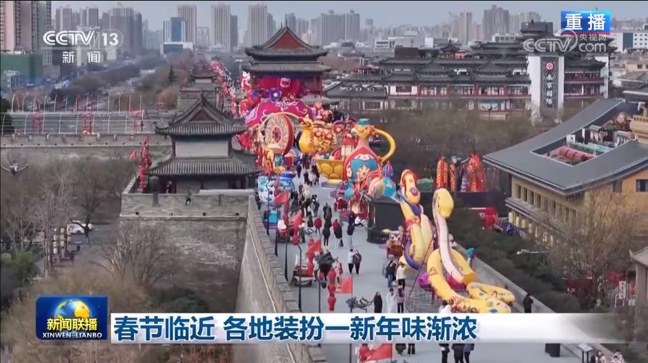 在北京長安街,大紅燈籠、中國結等各種燈飾陸續點亮,十里長街“披紅掛彩”迎新春。廣州越秀山華燈璀璨,具有嶺南特色的大型燈組、水上花燈打造出流光溢彩的喜慶氛圍。在陜西西安,今年燈會將38件文物珍寶以燈組的形式進行復刻,讓文物“活”起來、“亮”起來,通過這種方式讓市民游客感受中國傳統節日的魅力。在福建廈門,數萬盞宮燈、藤球燈、燈籠串布滿大街小巷,將城市裝扮一新,微風拂過,花燈搖曳,喜氣滿滿。