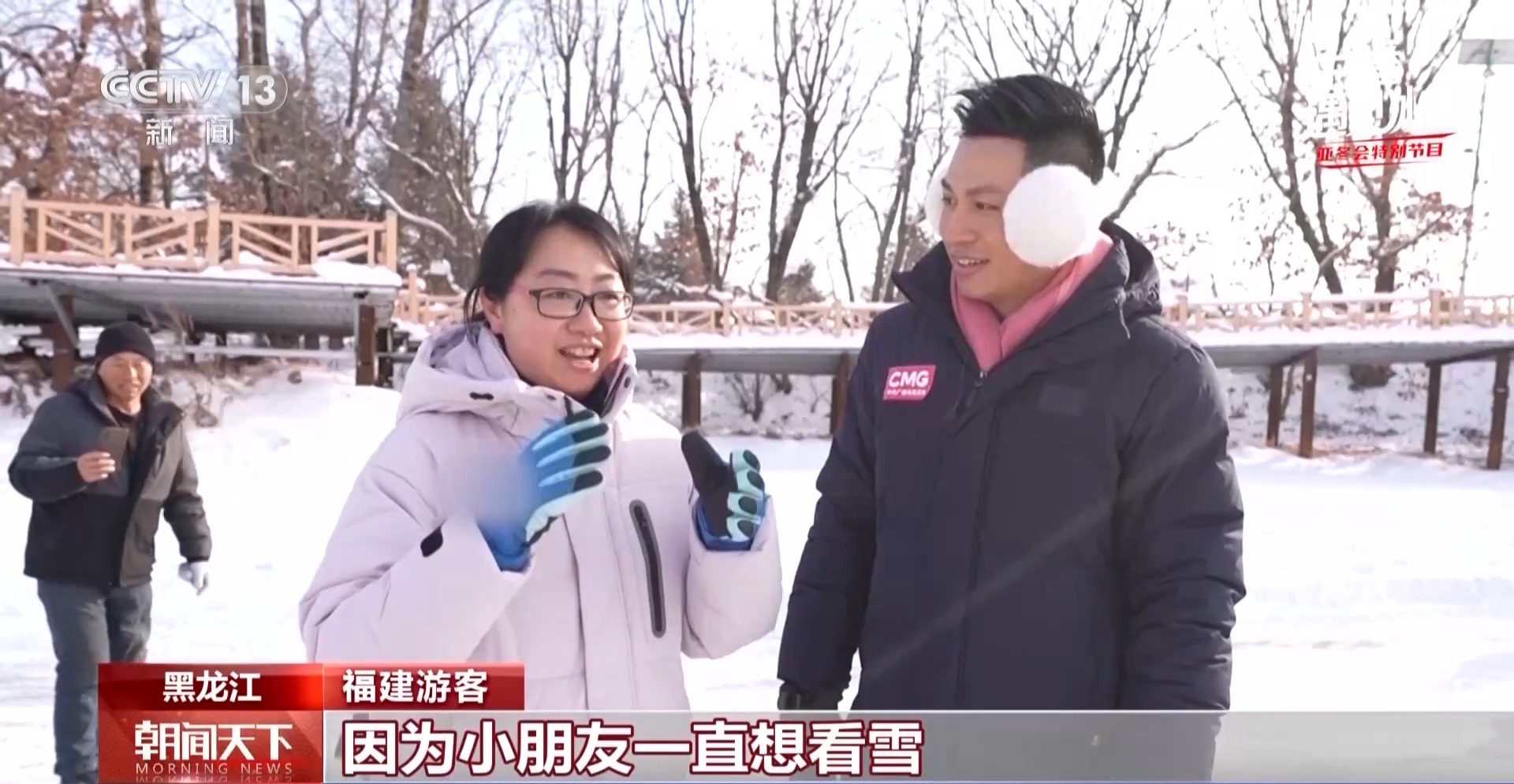 在村里的冰場,何巖柯跟孩子們一起解鎖了冰車的N種玩法,還遇見了來自福建的游客,為什么選擇到東北來玩?