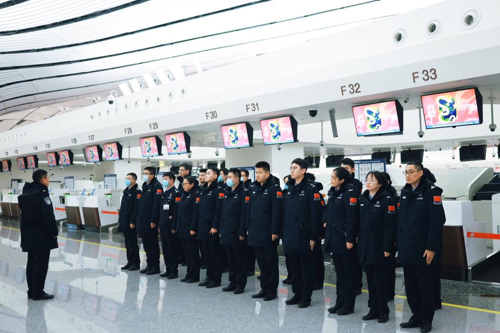 北京大興機場邊檢站迎來客流高峰,民警們24小時輪流執勤,保障旅客平安順暢通關。