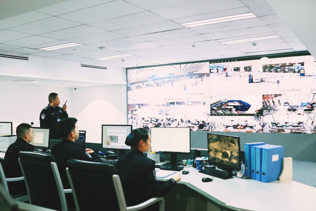 指揮中心的大屏上,機場每個角落的現場視頻一目了然。“我們會根據大屏觀察出入境現場人流量,及時優化調配警力;適時介入各類案事件、協調聯絡機場相關部門給予協助,確保口岸始終處于平穩、順暢的狀態。”大興機場邊檢站邊檢處處長李欣說。