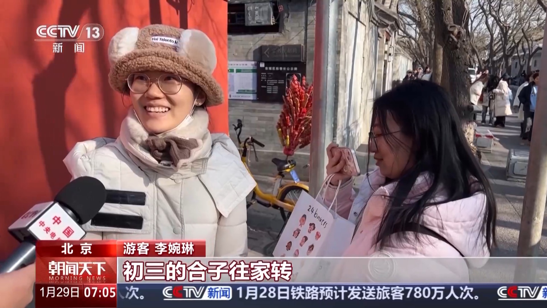 北京游客 李婉琳:北方就是都會有“貼吊錢”的文化。初一的餃子,初二的面,初三的合子往家轉。
