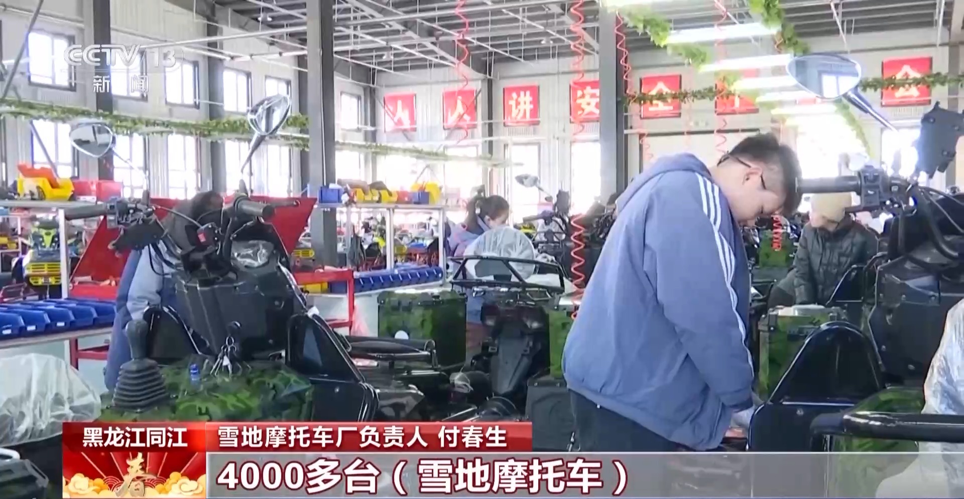 雪地摩托車廠負責人 付春生:去年我們接了很多訂單,2025年訂單我們已經接4000多臺雪地摩托車了,其中國外的是3000多臺,主要是俄羅斯,還有東歐國家。