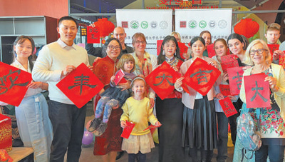 在塞爾維亞諾維薩德大學孔子學院近日舉辦的春節聯歡活動上,當地學生展示書法作品。張夢琪攝