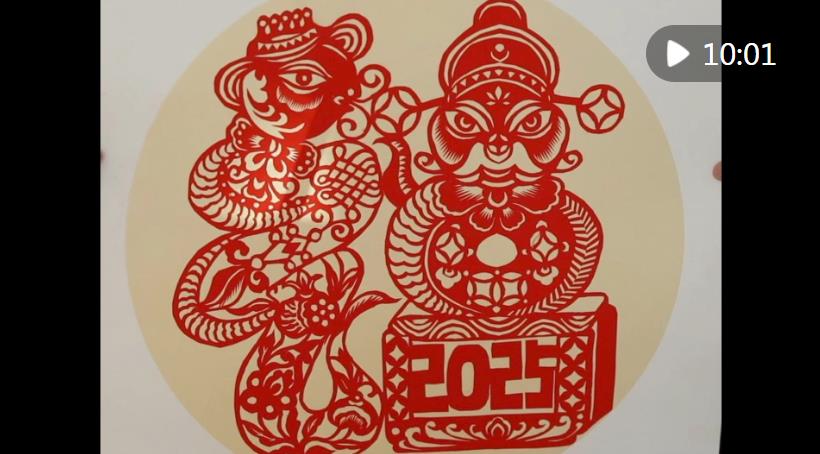 左手持紅紙,右手握剪刀,65歲的伏兆娥時而微笑、時而凝神,沉浸在創作之中。“送福蛇”,許仙、白娘子,“蛇盤兔”……伏兆娥制作了多幅造型各異的剪紙作品慶祝新春佳節的到來。