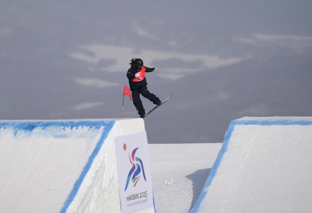 2月8日,李方慧在比賽中。當(dāng)日,在第九屆亞冬會自由式滑雪女子U型場地技巧決賽中,中國選手李方慧獲得金牌,這是中國體育代表團在本屆亞冬會上的首枚金牌。新華社記者 夏一方 攝