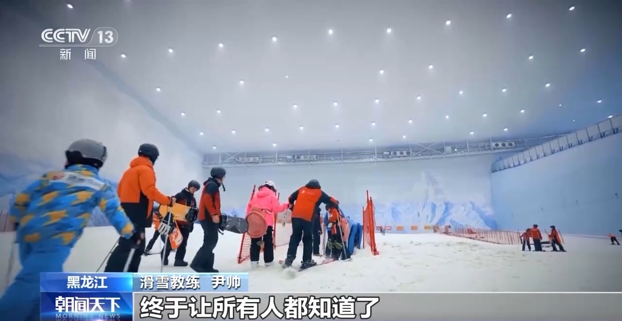 滑雪教練 尹帥:刷新聞看到這個冰雪運動趨勢也在上升,所以我覺得滑雪人越來越多了。就覺得原來就會滑點,喜歡滑雪,然后就接觸這個行業了。這輩子沒想到我居然能當個滑雪教練,教咱們成年人的,也是老師。這個時代成就了我。