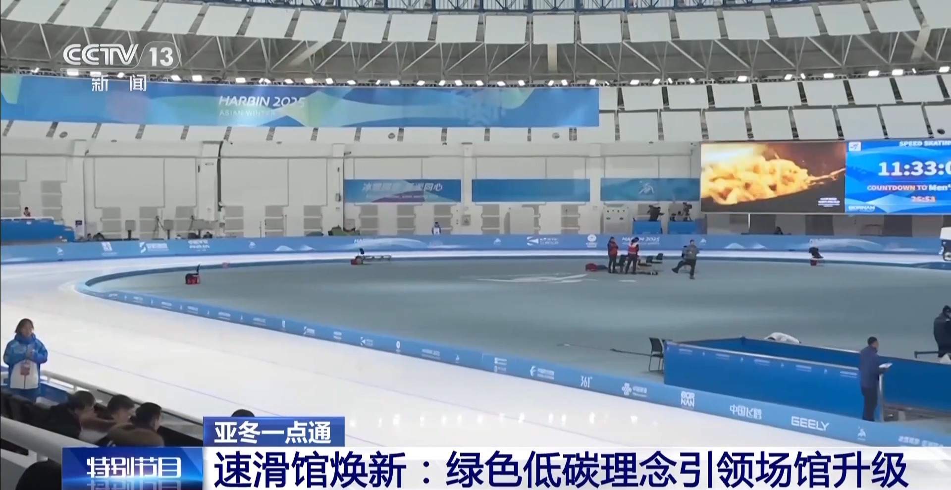 此外,運(yùn)動(dòng)員在激烈的比賽中,冰刀會(huì)破壞冰面。所以,在比賽間隙時(shí)就要進(jìn)行澆冰,將滑道的平整度、溫度調(diào)整到最好狀態(tài)。本屆亞冬會(huì),場(chǎng)館中的澆冰車更新為了先進(jìn)的電子澆冰車,能把水均勻平整地澆在冰面上,隨后冰層下面的冷排設(shè)備會(huì)將低溫傳導(dǎo)到冰面上,讓水快速冰凍,從而起到修復(fù)冰場(chǎng)的作用。澆冰的效率和精細(xì)化程度更高,保障了各國運(yùn)動(dòng)員們能滑出好成績(jī)。