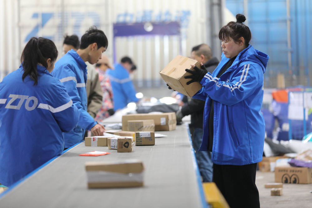 2025年1月30日,工人在湖南省永州市道縣中通快遞分揀中心分揀快遞件。新華社發(何紅福 攝)