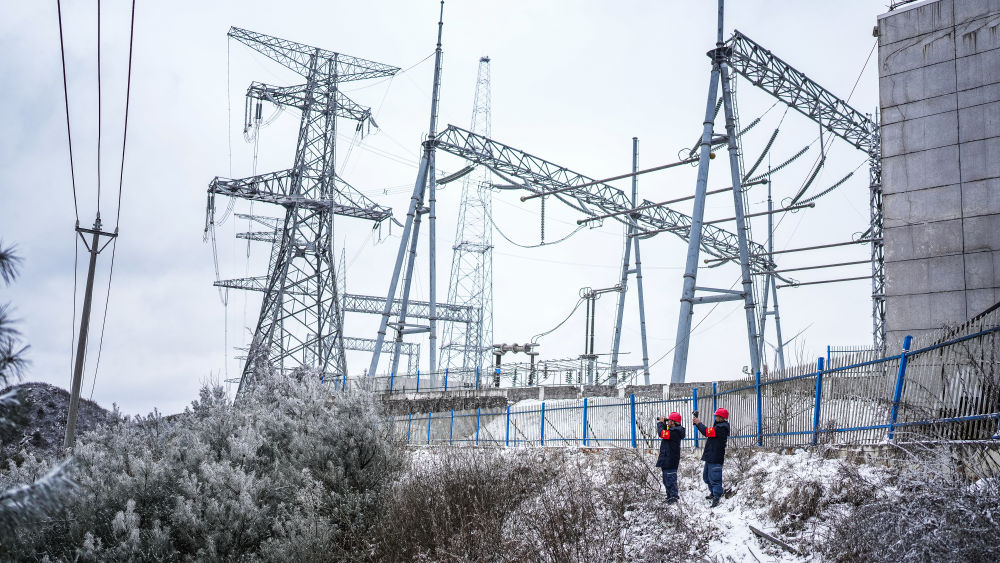 2025年1月26日,南方電網貴州六盤水鐘山供電局工作人員對轄區內線路進行覆冰觀測。新華社記者 陶亮 攝