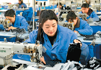近日,在山東省濟寧市嘉祥縣的一家企業車間內,工作人員在縫制滑雪手套。作為中國重要的滑雪手套生產基地之一,嘉祥縣手套產品遠銷60多個國家和地區。新華社記者 郭緒雷 攝